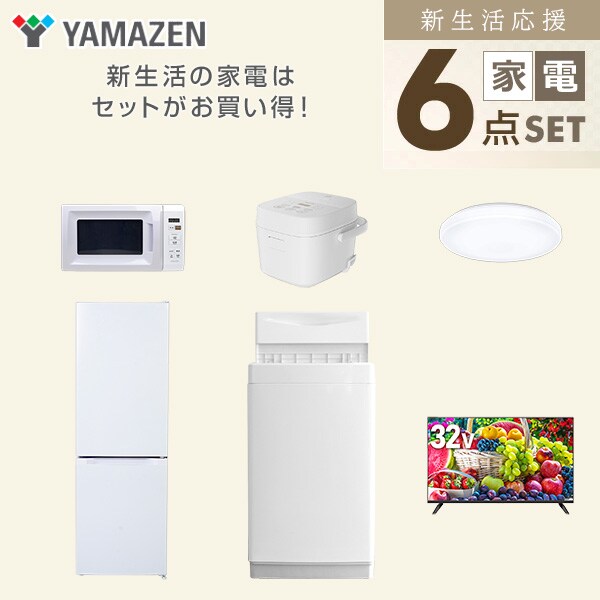 | 山善 YAMAZEN 【新生活応援セット】 家電セット 一人暮らし 新生活家電 6点セット 新品 ( 6kg洗濯機 157L冷蔵庫 電子レンジ 炊飯器 シーリングライト 32型液晶テレビ ) |