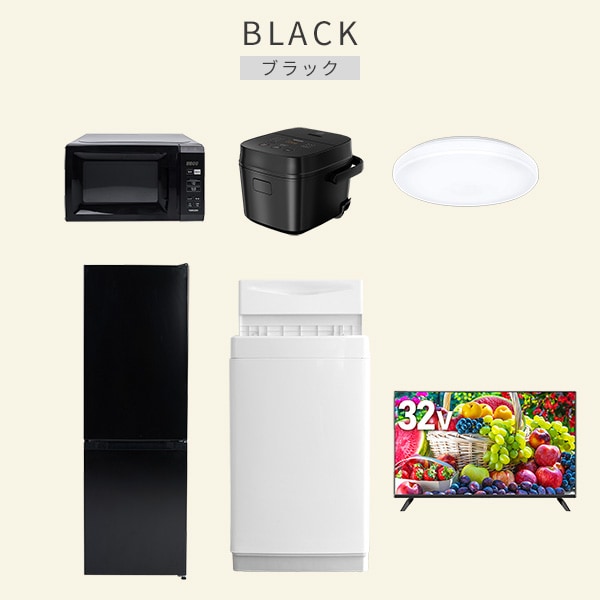 | 商品説明 | 【洗濯機】 ●容量:6.0kg(洗濯時)、1.5kg(風乾燥時) ●8つのコース搭載(標準・毛布・おいそぎ・ドライ・ソフト・つけおき・部屋干し・槽洗浄) 【冷蔵庫】 ●容量:157L(冷蔵室109L/冷凍室48L) ●年間消費電力量:270kWh/年 【電子レンジ】 ●容量17L、ターンテーブル ●高周波出力:50Hz(500W、200W相当)、60Hz(650W、500W、200W相当) 【炊飯器】 ●炊飯容量:3.0合炊き ●8種の炊き分けメニュー:省エネ、白米、早炊き、玄米、無洗米、炊込み、おかゆ、温度調理 【シーリングライト】 ●全光束:3600lm ●30分、60分OFFタイマー付き 【32型液晶テレビ】 ●サイズ:32V型 ●2K対応ハイビジョン液晶テレビ ●ラック以外メーカー保証:1年間 |