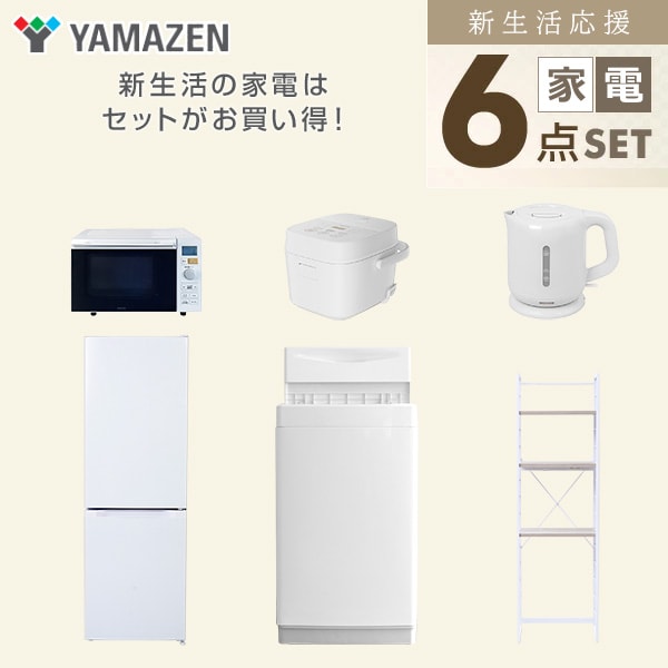 新生活家電セット 6点セット 一人暮らし (6kg洗濯機 157L冷蔵庫 オーブンレンジ 炊飯器 電気ケトル 家電収納ラック) ひとり暮らし 単身赴任新 学生 入学 おすすめ 山善 YAMAZEN【送料無料】