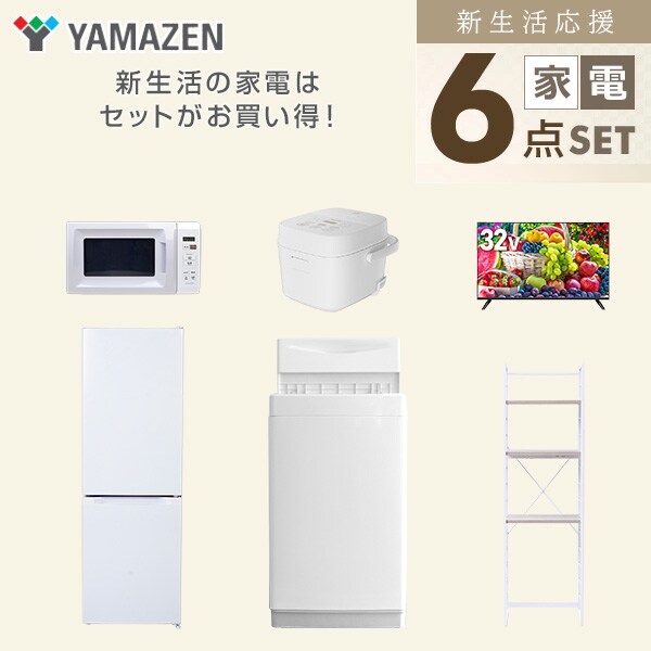 新生活家電セット 6点セット 一人暮らし (6kg洗濯機 157L冷蔵庫 電子レンジ 炊飯器 32型液晶テレビ 家電収納ラック) ひとり暮らし 単身赴任新 学生 入学 おすすめ 山善 YAMAZEN【送料無料】