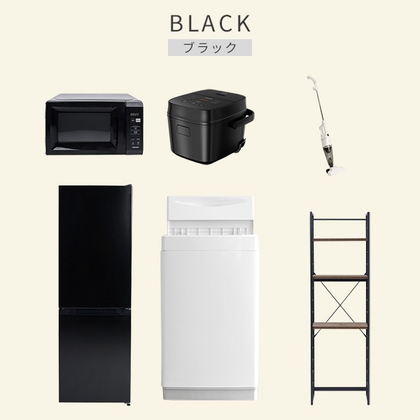 | 商品説明 | 【洗濯機】 ●容量:6.0kg(洗濯時)、1.5kg(風乾燥時) ●8つのコース搭載(標準・毛布・おいそぎ・ドライ・ソフト・つけおき・部屋干し・槽洗浄) 【冷蔵庫】 ●容量:157L(冷蔵室109L/冷凍室48L) ●年間消費電力量:270kWh/年 【電子レンジ】 ●容量17L、ターンテーブル ●高周波出力:50Hz(500W、200W相当)、60Hz(650W、500W、200W相当) 【炊飯器】 ●炊飯容量:3.0合炊き ●8種の炊き分けメニュー:省エネ、白米、早炊き、玄米、無洗米、炊込み、おかゆ、温度調理 【クリーナー】 ●スティック&ハンディの2WAY ●吸込仕事率:40W 【家電収納ラック】 ●棚やコンセントの高さを、モノに合わせて変更可能 ●2口コンセント付き(計1500Wまで)でよく使う家電や雑貨をすっきりひとまとめ ●ラック以外メーカー保証:1年間 |