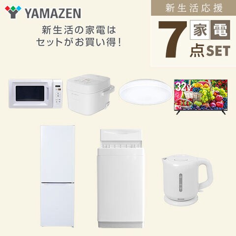 | 山善 YAMAZEN 【新生活応援セット】 家電セット 一人暮らし 新生活家電 7点セット 新品 ( 6kg洗濯機 157L冷蔵庫 電子レンジ 炊飯器 シーリングライト 32型液晶テレビ 電気ケトル ) |