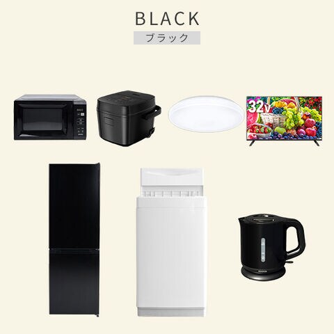 | 商品説明 | 【洗濯機】 ●容量:6.0kg(洗濯時)、1.5kg(風乾燥時) ●8つのコース搭載(標準・毛布・おいそぎ・ドライ・ソフト・つけおき・部屋干し・槽洗浄) 【冷蔵庫】 ●容量:157L(冷蔵室109L/冷凍室48L) ●年間消費電力量:270kWh/年 【電子レンジ】 ●容量17L、ターンテーブル ●高周波出力:50Hz(500W、200W相当)、60Hz(650W、500W、200W相当) 【炊飯器】 ●炊飯容量:3.0合炊き ●8種の炊き分けメニュー:省エネ、白米、早炊き、玄米、無洗米、炊込み、おかゆ、温度調理 【シーリングライト】 ●全光束:3600lm ●30分、60分OFFタイマー付き 【32型液晶テレビ】 ●サイズ:32V型 ●2K対応ハイビジョン液晶テレビ 【電気ケトル】 ●容量:1.0L ●空焚き防止機能搭載 ●ラック以外メーカー保証:1年間 |