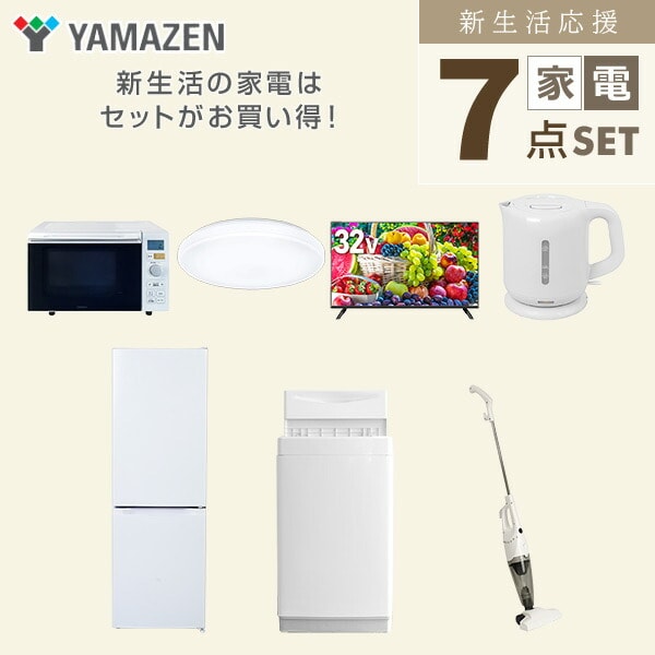 | 山善 YAMAZEN 【新生活応援セット】 家電セット 一人暮らし 新生活家電 7点セット 新品 ( 6kg洗濯機 157L冷蔵庫 オーブンレンジ シーリングライト 32型液晶テレビ 電気ケトル スティッククリーナー ) |