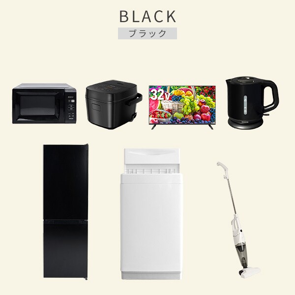 | 商品説明 | 【洗濯機】 ●容量:6.0kg(洗濯時)、1.5kg(風乾燥時) ●8つのコース搭載(標準・毛布・おいそぎ・ドライ・ソフト・つけおき・部屋干し・槽洗浄) 【冷蔵庫】 ●容量:157L(冷蔵室109L/冷凍室48L) ●年間消費電力量:270kWh/年 【電子レンジ】 ●容量17L、ターンテーブル ●高周波出力:50Hz(500W、200W相当)、60Hz(650W、500W、200W相当) 【炊飯器】 ●炊飯容量:3.0合炊き ●8種の炊き分けメニュー:省エネ、白米、早炊き、玄米、無洗米、炊込み、おかゆ、温度調理 【32型液晶テレビ】 ●サイズ:32V型 ●2K対応ハイビジョン液晶テレビ 【電気ケトル】 ●容量:1.0L ●空焚き防止機能搭載 【クリーナー】 ●スティック&ハンディの2WAY ●吸込仕事率:40W ●ラック以外メーカー保証:1年間 |