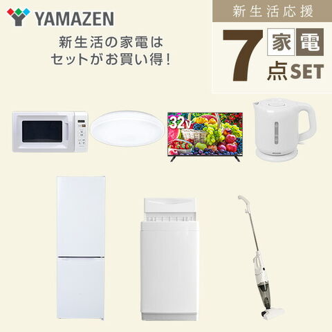 | 山善 YAMAZEN 【新生活応援セット】 家電セット 一人暮らし 新生活家電 7点セット 新品 ( 6kg洗濯機 157L冷蔵庫 電子レンジ シーリングライト 32型液晶テレビ 電気ケトル スティッククリーナー ) |