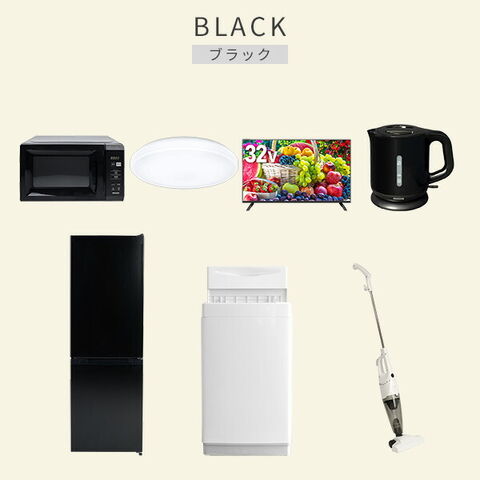 | 商品説明 | 【洗濯機】 ●容量:6.0kg(洗濯時)、1.5kg(風乾燥時) ●8つのコース搭載(標準・毛布・おいそぎ・ドライ・ソフト・つけおき・部屋干し・槽洗浄) 【冷蔵庫】 ●容量:157L(冷蔵室109L/冷凍室48L) ●年間消費電力量:270kWh/年 【電子レンジ】 ●容量17L、ターンテーブル ●高周波出力:50Hz(500W、200W相当)、60Hz(650W、500W、200W相当) 【シーリングライト】 ●全光束:3600lm ●30分、60分OFFタイマー付き 【32型液晶テレビ】 ●サイズ:32V型 ●2K対応ハイビジョン液晶テレビ 【電気ケトル】 ●容量:1.0L ●空焚き防止機能搭載 【クリーナー】 ●スティック&ハンディの2WAY ●吸込仕事率:40W ●ラック以外メーカー保証:1年間 |