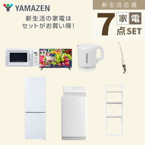 | 山善 YAMAZEN 【新生活応援セット】 家電セット 一人暮らし 新生活家電 7点セット 新品 ( 6kg洗濯機 157L冷蔵庫 電子レンジ 32型液晶テレビ 電気ケトル スティッククリーナー 家電収納ラック ) |