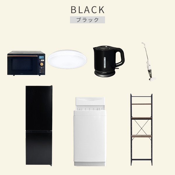 | 商品説明 | 【洗濯機】 ●容量:6.0kg(洗濯時)、1.5kg(風乾燥時) ●8つのコース搭載(標準・毛布・おいそぎ・ドライ・ソフト・つけおき・部屋干し・槽洗浄) 【冷蔵庫】 ●容量:157L(冷蔵室109L/冷凍室48L) ●年間消費電力量:270kWh/年 【オーブンレンジ】 ●容量18L、フラットテーブル ●高周波出力:650W(60Hzのみ)/500W/200W相当 【シーリングライト】 ●全光束:3600lm ●30分、60分OFFタイマー付き 【電気ケトル】 ●容量:1.0L ●空焚き防止機能搭載 【クリーナー】 ●スティック&ハンディの2WAY ●吸込仕事率:40W 【家電収納ラック】 ●棚やコンセントの高さを、モノに合わせて変更可能 ●2口コンセント付き(計1500Wまで)でよく使う家電や雑貨をすっきりひとまとめ ●ラック以外メーカー保証:1年間 |