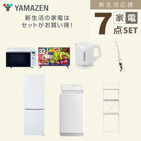 新生活家電セット 7点セット 一人暮らし (6kg洗濯機 157L冷蔵庫 オーブンレンジ 32型液晶テレビ 電気ケトル スティッククリーナー 家電収納ラック) ひとり暮らし 単身赴任新 学生 入学 おすすめ 山善 YAMAZEN【送料無料】