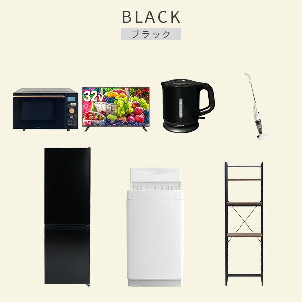 | 商品説明 | 【洗濯機】 ●容量:6.0kg(洗濯時)、1.5kg(風乾燥時) ●8つのコース搭載(標準・毛布・おいそぎ・ドライ・ソフト・つけおき・部屋干し・槽洗浄) 【冷蔵庫】 ●容量:157L(冷蔵室109L/冷凍室48L) ●年間消費電力量:270kWh/年 【オーブンレンジ】 ●容量18L、フラットテーブル ●高周波出力:650W(60Hzのみ)/500W/200W相当 【32型液晶テレビ】 ●サイズ:32V型 ●2K対応ハイビジョン液晶テレビ 【電気ケトル】 ●容量:1.0L ●空焚き防止機能搭載 【クリーナー】 ●スティック&ハンディの2WAY ●吸込仕事率:40W 【家電収納ラック】 ●棚やコンセントの高さを、モノに合わせて変更可能 ●2口コンセント付き(計1500Wまで)でよく使う家電や雑貨をすっきりひとまとめ ●ラック以外メーカー保証:1年間 |