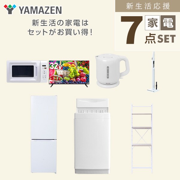 | 山善 YAMAZEN 【新生活応援セット】 家電セット 一人暮らし 新生活家電 7点セット 新品 ( 6kg洗濯機 157L冷蔵庫 電子レンジ 32型液晶テレビ 電気ケトル 軽量クリーナー 家電収納ラック ) |