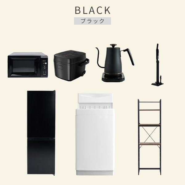 | 商品説明 | 【洗濯機】 ●容量:6.0kg(洗濯時)、1.5kg(風乾燥時) ●8つのコース搭載(標準・毛布・おいそぎ・ドライ・ソフト・つけおき・部屋干し・槽洗浄) 【冷蔵庫】 ●容量:157L(冷蔵室109L/冷凍室48L) ●年間消費電力量:270kWh/年 【電子レンジ】 ●容量17L、ターンテーブル ●高周波出力:50Hz(500W、200W相当)、60Hz(650W、500W、200W相当) 【炊飯器】 ●炊飯容量:3.0合炊き ●8種の炊き分けメニュー:省エネ、白米、早炊き、玄米、無洗米、炊込み、おかゆ、温度調理 【電気温調ケトル】 ●容量:800ml ●温度設定範囲:60-100度の間で1度単位で温度調整可能 【軽量クリーナー】 ●わずか820gの軽量クリーナー ●連続使用時間:(強)約10分、(標準)約25分 【家電収納ラック】 ●棚やコンセントの高さを、モノに合わせて変更可能 ●2口コンセント付き(計1500Wまで)でよく使う家電や雑貨をすっきりひとまとめ ●ラック以外メーカー保証:1年間 |