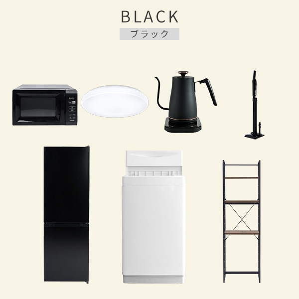 | 商品説明 | 【洗濯機】 ●容量:6.0kg(洗濯時)、1.5kg(風乾燥時) ●8つのコース搭載(標準・毛布・おいそぎ・ドライ・ソフト・つけおき・部屋干し・槽洗浄) 【冷蔵庫】 ●容量:157L(冷蔵室109L/冷凍室48L) ●年間消費電力量:270kWh/年 【電子レンジ】 ●容量17L、ターンテーブル ●高周波出力:50Hz(500W、200W相当)、60Hz(650W、500W、200W相当) 【シーリングライト】 ●全光束:3600lm ●30分、60分OFFタイマー付き 【電気温調ケトル】 ●容量:800ml ●温度設定範囲:60-100度の間で1度単位で温度調整可能 【軽量クリーナー】 ●わずか820gの軽量クリーナー ●連続使用時間:(強)約10分、(標準)約25分 【家電収納ラック】 ●棚やコンセントの高さを、モノに合わせて変更可能 ●2口コンセント付き(計1500Wまで)でよく使う家電や雑貨をすっきりひとまとめ ●ラック以外メーカー保証:1年間 |