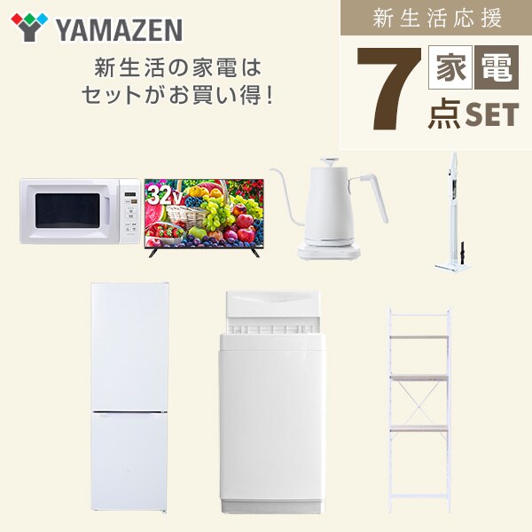 新生活家電セット 7点セット 一人暮らし (6kg洗濯機 157L冷蔵庫 電子レンジ 32型液晶テレビ 温調ケトル 軽量クリーナー 家電収納ラック) ひとり暮らし 単身赴任新 学生 入学 おすすめ 山善 YAMAZEN【送料無料】
