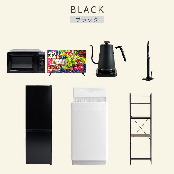 【新生活応援セット】 家電セット 一人暮らし 新生活家電 7点セット 新品 ( 6kg洗濯機 157L冷蔵庫 電子レンジ 32型液晶テレビ 温調ケトル 軽量クリーナー 家電収納ラック )
