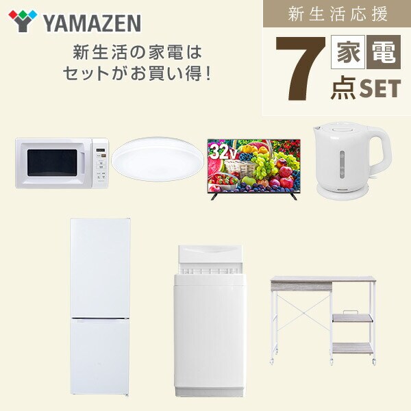 | 山善 YAMAZEN 【新生活応援セット】 家電セット 一人暮らし 新生活家電 7点セット 新品 ( 6kg洗濯機 157L冷蔵庫 電子レンジ シーリングライト 32型液晶テレビ 電気ケトル レンジラック ) |