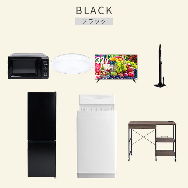 | 商品説明 | 【洗濯機】 ●容量:6.0kg(洗濯時)、1.5kg(風乾燥時) ●8つのコース搭載(標準・毛布・おいそぎ・ドライ・ソフト・つけおき・部屋干し・槽洗浄) 【冷蔵庫】 ●容量:157L(冷蔵室109L/冷凍室48L) ●年間消費電力量:270kWh/年 【電子レンジ】 ●容量17L、ターンテーブル ●高周波出力:50Hz(500W、200W相当)、60Hz(650W、500W、200W相当) 【シーリングライト】 ●全光束:3600lm ●30分、60分OFFタイマー付き 【32型液晶テレビ】 ●サイズ:32V型 ●2K対応ハイビジョン液晶テレビ 【軽量クリーナー】 ●わずか820gの軽量クリーナー ●連続使用時間:(強)約10分、(標準)約25分 【レンジラック】 ●ゴミ箱上を活用する、しっかり頑丈なキッチンラック ●2口コンセント付き(計1500Wまで)でよく使う家電や雑貨をすっきりひとまとめ ●ラック以外メーカー保証:1年間 |