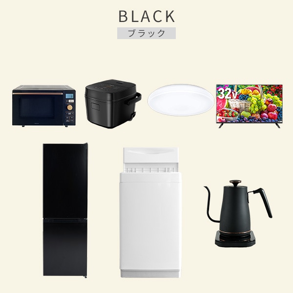 | 商品説明 | 【洗濯機】 ●容量:6.0kg(洗濯時)、1.5kg(風乾燥時) ●8つのコース搭載(標準・毛布・おいそぎ・ドライ・ソフト・つけおき・部屋干し・槽洗浄) 【冷蔵庫】 ●容量:157L(冷蔵室109L/冷凍室48L) ●年間消費電力量:270kWh/年 【オーブンレンジ】 ●容量18L、フラットテーブル ●高周波出力:650W(60Hzのみ)/500W/200W相当 【炊飯器】 ●炊飯容量:3.0合炊き ●8種の炊き分けメニュー:省エネ、白米、早炊き、玄米、無洗米、炊込み、おかゆ、温度調理 【シーリングライト】 ●全光束:3600lm ●30分、60分OFFタイマー付き 【32型液晶テレビ】 ●サイズ:32V型 ●2K対応ハイビジョン液晶テレビ 【電気温調ケトル】 ●容量:800ml ●温度設定範囲:60-100度の間で1度単位で温度調整可能 ●ラック以外メーカー保証:1年間 |