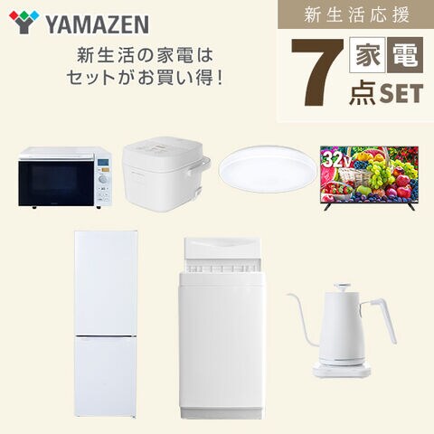 | 山善 YAMAZEN 【新生活応援セット】 家電セット 一人暮らし 新生活家電 7点セット 新品 ( 6kg洗濯機 157L冷蔵庫 オーブンレンジ 炊飯器 シーリングライト 32型液晶テレビ 温調ケトル ) |
