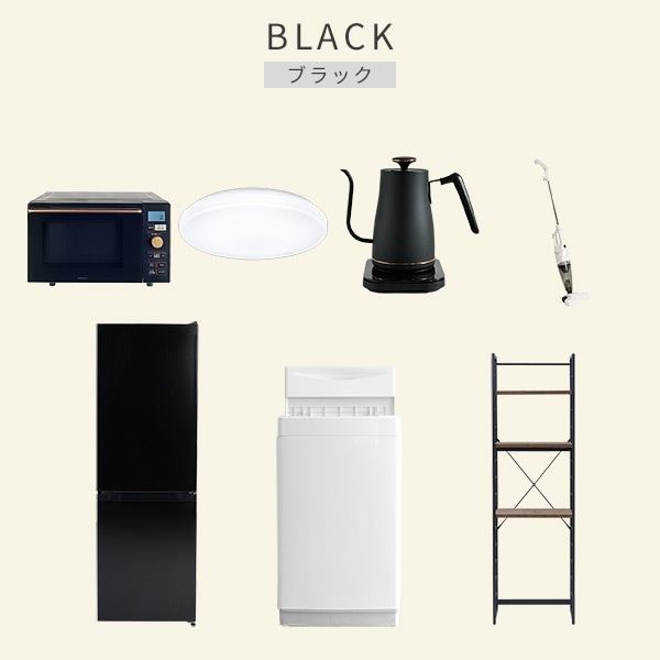 【新生活応援セット】 家電セット 一人暮らし 新生活家電 7点セット 新品 ( 6kg洗濯機 157L冷蔵庫 オーブンレンジ シーリングライト 温調ケトル スティッククリーナー 家電収納ラック )