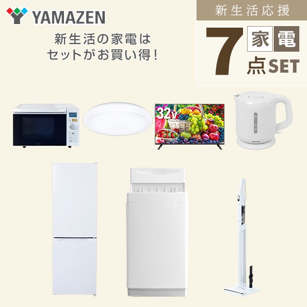 新生活家電セット 7点セット 一人暮らし (6kg洗濯機 157L冷蔵庫 オーブンレンジ シーリングライト 32型液晶テレビ 電気ケトル 軽量クリーナー) ひとり暮らし 単身赴任新 学生 入学 おすすめ 山善 YAMAZEN【送料無料】
