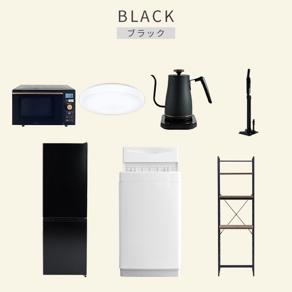| 商品説明 | 【洗濯機】 ●容量:6.0kg(洗濯時)、1.5kg(風乾燥時) ●8つのコース搭載(標準・毛布・おいそぎ・ドライ・ソフト・つけおき・部屋干し・槽洗浄) 【冷蔵庫】 ●容量:157L(冷蔵室109L/冷凍室48L) ●年間消費電力量:270kWh/年 【オーブンレンジ】 ●容量18L、フラットテーブル ●高周波出力:650W(60Hzのみ)/500W/200W相当 【シーリングライト】 ●全光束:3600lm ●30分、60分OFFタイマー付き 【電気温調ケトル】 ●容量:800ml ●温度設定範囲:60-100度の間で1度単位で温度調整可能 【軽量クリーナー】 ●わずか820gの軽量クリーナー ●連続使用時間:(強)約10分、(標準)約25分 【家電収納ラック】 ●棚やコンセントの高さを、モノに合わせて変更可能 ●2口コンセント付き(計1500Wまで)でよく使う家電や雑貨をすっきりひとまとめ ●ラック以外メーカー保証:1年間 |