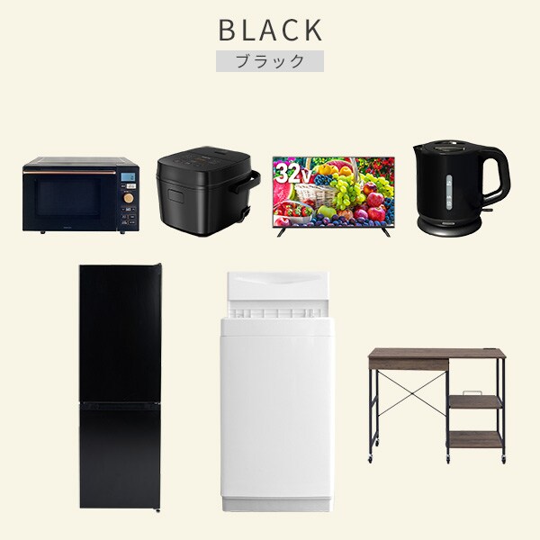 | 商品説明 | 【洗濯機】 ●容量:6.0kg(洗濯時)、1.5kg(風乾燥時) ●8つのコース搭載(標準・毛布・おいそぎ・ドライ・ソフト・つけおき・部屋干し・槽洗浄) 【冷蔵庫】 ●容量:157L(冷蔵室109L/冷凍室48L) ●年間消費電力量:270kWh/年 【オーブンレンジ】 ●容量18L、フラットテーブル ●高周波出力:650W(60Hzのみ)/500W/200W相当 【炊飯器】 ●炊飯容量:3.0合炊き ●8種の炊き分けメニュー:省エネ、白米、早炊き、玄米、無洗米、炊込み、おかゆ、温度調理 【32型液晶テレビ】 ●サイズ:32V型 ●2K対応ハイビジョン液晶テレビ 【電気ケトル】 ●容量:1.0L ●空焚き防止機能搭載 【レンジラック】 ●ゴミ箱上を活用する、しっかり頑丈なキッチンラック ●2口コンセント付き(計1500Wまで)でよく使う家電や雑貨をすっきりひとまとめ ●ラック以外メーカー保証:1年間 |