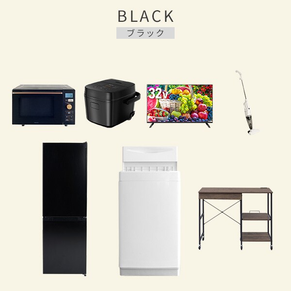 | 商品説明 | 【洗濯機】 ●容量:6.0kg(洗濯時)、1.5kg(風乾燥時) ●8つのコース搭載(標準・毛布・おいそぎ・ドライ・ソフト・つけおき・部屋干し・槽洗浄) 【冷蔵庫】 ●容量:157L(冷蔵室109L/冷凍室48L) ●年間消費電力量:270kWh/年 【オーブンレンジ】 ●容量18L、フラットテーブル ●高周波出力:650W(60Hzのみ)/500W/200W相当 【炊飯器】 ●炊飯容量:3.0合炊き ●8種の炊き分けメニュー:省エネ、白米、早炊き、玄米、無洗米、炊込み、おかゆ、温度調理 【32型液晶テレビ】 ●サイズ:32V型 ●2K対応ハイビジョン液晶テレビ 【クリーナー】 ●スティック&ハンディの2WAY ●吸込仕事率:40W 【レンジラック】 ●ゴミ箱上を活用する、しっかり頑丈なキッチンラック ●2口コンセント付き(計1500Wまで)でよく使う家電や雑貨をすっきりひとまとめ ●ラック以外メーカー保証:1年間 |