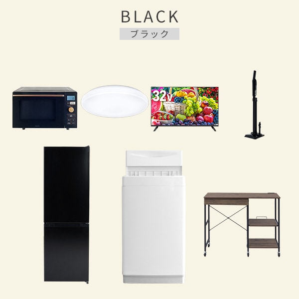 【新生活応援セット】 家電セット 一人暮らし 新生活家電 7点セット 新品 ( 6kg洗濯機 157L冷蔵庫 オーブンレンジ シーリングライト 32型液晶テレビ 軽量クリーナー レンジラック )