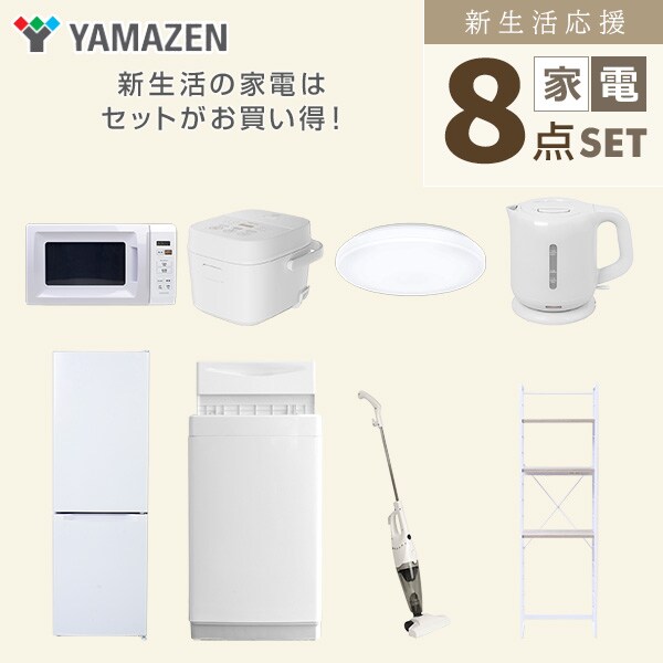 新生活家電セット 8点セット 一人暮らし (6kg洗濯機 157L冷蔵庫 電子レンジ 炊飯器 シーリングライト 電気ケトル スティッククリーナー 家電収納ラック) ひとり暮らし 単身赴任新 学生 入学 おすすめ 山善 YAMAZEN【送料無料】