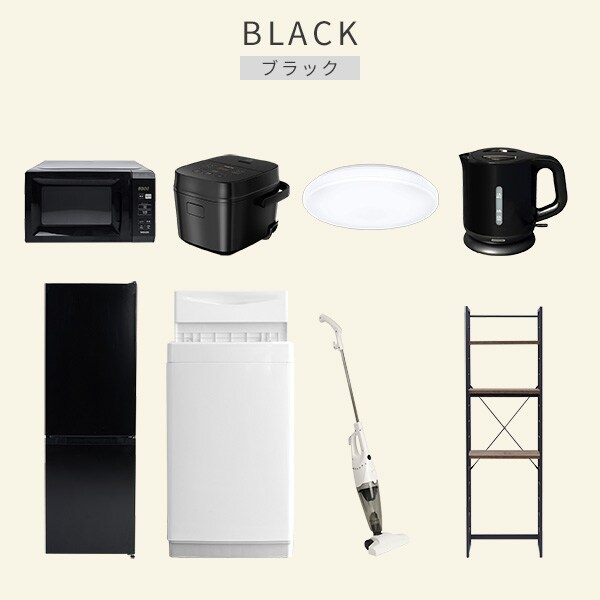| 商品説明 | 【洗濯機】 ●容量:6.0kg(洗濯時)、1.5kg(風乾燥時) ●8つのコース搭載(標準・毛布・おいそぎ・ドライ・ソフト・つけおき・部屋干し・槽洗浄) 【冷蔵庫】 ●容量:157L(冷蔵室109L/冷凍室48L) ●年間消費電力量:270kWh/年 【電子レンジ】 ●容量17L、ターンテーブル ●高周波出力:50Hz(500W、200W相当)、60Hz(650W、500W、200W相当) 【炊飯器】 ●炊飯容量:3.0合炊き ●8種の炊き分けメニュー:省エネ、白米、早炊き、玄米、無洗米、炊込み、おかゆ、温度調理 【シーリングライト】 ●全光束:3600lm ●30分、60分OFFタイマー付き 【電気ケトル】 ●容量:1.0L ●空焚き防止機能搭載 【クリーナー】 ●スティック&ハンディの2WAY ●吸込仕事率:40W 【家電収納ラック】 ●棚やコンセントの高さを、モノに合わせて変更可能 ●2口コンセント付き(計1500Wまで)でよく使う家電や雑貨をすっきりひとまとめ ●ラック以外メーカー保証:1年間 |