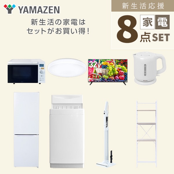 | 山善 YAMAZEN 【新生活応援セット】 家電セット 一人暮らし 新生活家電 8点セット 新品 ( 6kg洗濯機 157L冷蔵庫 オーブンレンジ シーリングライト 32型液晶テレビ 電気ケトル 軽量クリーナー 家電収納ラック ) |