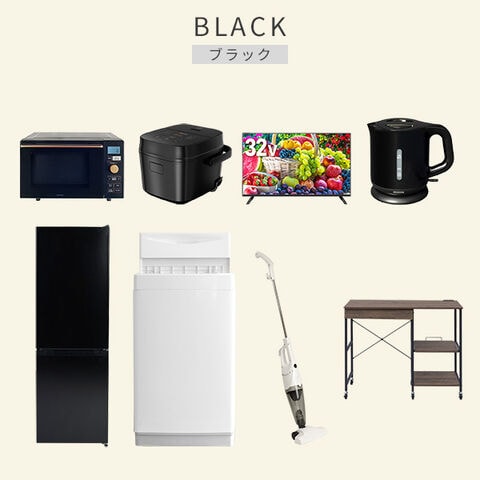 | 商品説明 | 【洗濯機】 ●容量:6.0kg(洗濯時)、1.5kg(風乾燥時) ●8つのコース搭載(標準・毛布・おいそぎ・ドライ・ソフト・つけおき・部屋干し・槽洗浄) 【冷蔵庫】 ●容量:157L(冷蔵室109L/冷凍室48L) ●年間消費電力量:270kWh/年 【オーブンレンジ】 ●容量18L、フラットテーブル ●高周波出力:650W(60Hzのみ)/500W/200W相当 【炊飯器】 ●炊飯容量:3.0合炊き ●8種の炊き分けメニュー:省エネ、白米、早炊き、玄米、無洗米、炊込み、おかゆ、温度調理 【32型液晶テレビ】 ●サイズ:32V型 ●2K対応ハイビジョン液晶テレビ 【電気ケトル】 ●容量:1.0L ●空焚き防止機能搭載 【クリーナー】 ●スティック&ハンディの2WAY ●吸込仕事率:40W 【レンジラック】 ●ゴミ箱上を活用する、しっかり頑丈なキッチンラック ●2口コンセント付き(計1500Wまで)でよく使う家電や雑貨をすっきりひとまとめ ●ラック以外メーカー保証:1年間 |