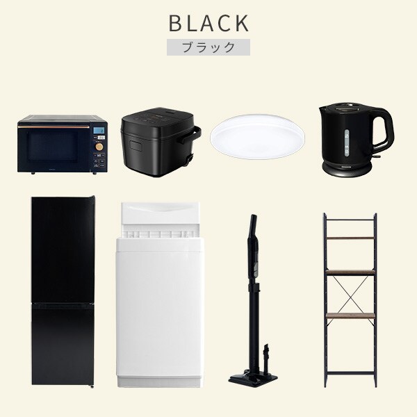 | 商品説明 | 【洗濯機】 ●容量:6.0kg(洗濯時)、1.5kg(風乾燥時) ●8つのコース搭載(標準・毛布・おいそぎ・ドライ・ソフト・つけおき・部屋干し・槽洗浄) 【冷蔵庫】 ●容量:157L(冷蔵室109L/冷凍室48L) ●年間消費電力量:270kWh/年 【オーブンレンジ】 ●容量18L、フラットテーブル ●高周波出力:650W(60Hzのみ)/500W/200W相当 【炊飯器】 ●炊飯容量:3.0合炊き ●8種の炊き分けメニュー:省エネ、白米、早炊き、玄米、無洗米、炊込み、おかゆ、温度調理 【シーリングライト】 ●全光束:3600lm ●30分、60分OFFタイマー付き 【電気ケトル】 ●容量:1.0L ●空焚き防止機能搭載 【軽量クリーナー】 ●わずか820gの軽量クリーナー ●連続使用時間:(強)約10分、(標準)約25分 【家電収納ラック】 ●棚やコンセントの高さを、モノに合わせて変更可能 ●2口コンセント付き(計1500Wまで)でよく使う家電や雑貨をすっきりひとまとめ ●ラック以外メーカー保証:1年間 |
