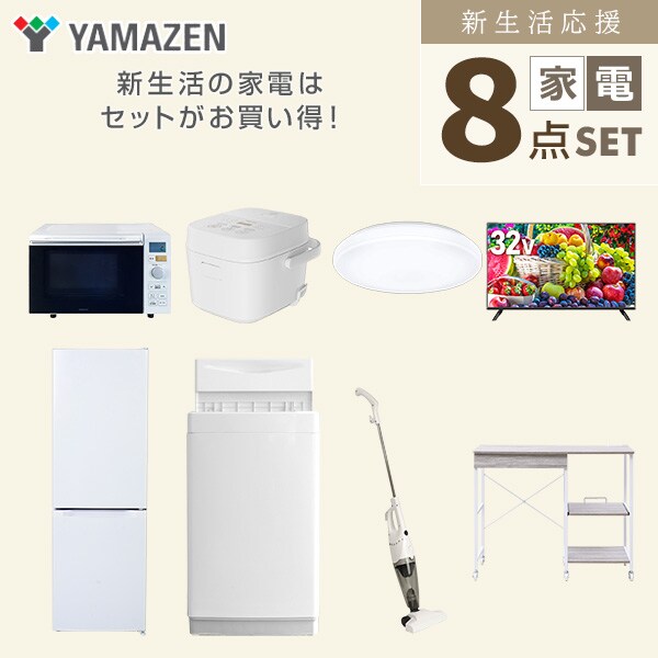 新生活家電セット 8点セット 一人暮らし (6kg洗濯機 157L冷蔵庫 オーブンレンジ 炊飯器 シーリングライト 32型液晶テレビ スティッククリーナー ひとり暮らし 単身赴任新 学生 入学 おすすめ 山善 YAMAZEN【送料無料】