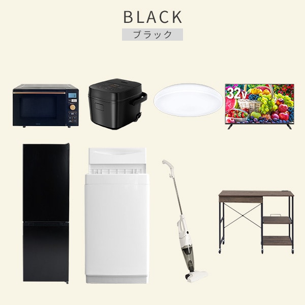 | 商品説明 | 【洗濯機】 ●容量:6.0kg(洗濯時)、1.5kg(風乾燥時) ●8つのコース搭載(標準・毛布・おいそぎ・ドライ・ソフト・つけおき・部屋干し・槽洗浄) 【冷蔵庫】 ●容量:157L(冷蔵室109L/冷凍室48L) ●年間消費電力量:270kWh/年 【オーブンレンジ】 ●容量18L、フラットテーブル ●高周波出力:650W(60Hzのみ)/500W/200W相当 【炊飯器】 ●炊飯容量:3.0合炊き ●8種の炊き分けメニュー:省エネ、白米、早炊き、玄米、無洗米、炊込み、おかゆ、温度調理 【シーリングライト】 ●全光束:3600lm ●30分、60分OFFタイマー付き 【32型液晶テレビ】 ●サイズ:32V型 ●2K対応ハイビジョン液晶テレビ 【クリーナー】 ●スティック&ハンディの2WAY ●吸込仕事率:40W 【レンジラック】 ●ゴミ箱上を活用する、しっかり頑丈なキッチンラック ●2口コンセント付き(計1500Wまで)でよく使う家電や雑貨をすっきりひとまとめ ●ラック以外メーカー保証:1年間 |