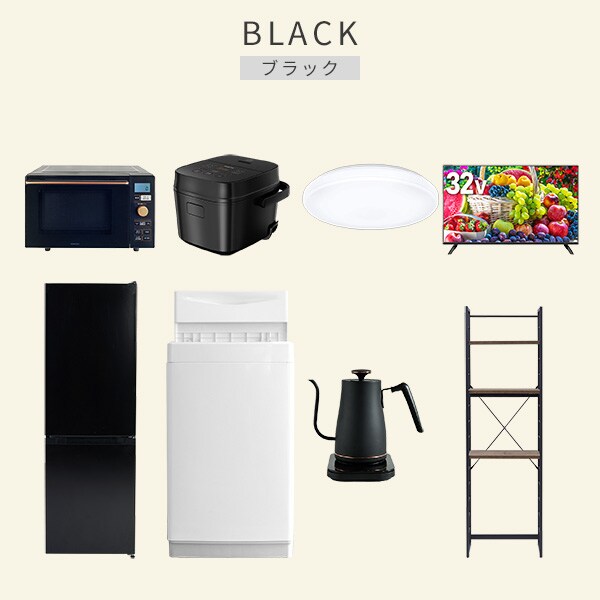 | 商品説明 | 【洗濯機】 ●容量:6.0kg(洗濯時)、1.5kg(風乾燥時) ●8つのコース搭載(標準・毛布・おいそぎ・ドライ・ソフト・つけおき・部屋干し・槽洗浄) 【冷蔵庫】 ●容量:157L(冷蔵室109L/冷凍室48L) ●年間消費電力量:270kWh/年 【オーブンレンジ】 ●容量18L、フラットテーブル ●高周波出力:650W(60Hzのみ)/500W/200W相当 【炊飯器】 ●炊飯容量:3.0合炊き ●8種の炊き分けメニュー:省エネ、白米、早炊き、玄米、無洗米、炊込み、おかゆ、温度調理 【シーリングライト】 ●全光束:3600lm ●30分、60分OFFタイマー付き 【32型液晶テレビ】 ●サイズ:32V型 ●2K対応ハイビジョン液晶テレビ 【電気温調ケトル】 ●容量:800ml ●温度設定範囲:60-100度の間で1度単位で温度調整可能 【家電収納ラック】 ●棚やコンセントの高さを、モノに合わせて変更可能 ●2口コンセント付き(計1500Wまで)でよく使う家電や雑貨をすっきりひとまとめ ●ラック以外メーカー保証:1年間 |