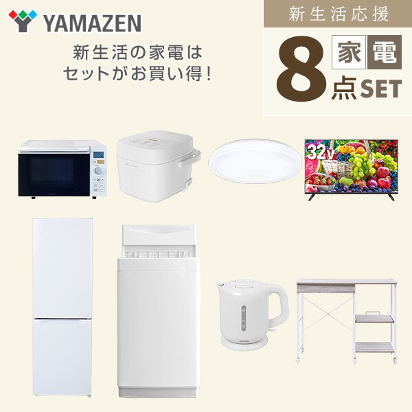 | 山善 YAMAZEN 【新生活応援セット】 家電セット 一人暮らし 新生活家電 8点セット 新品 ( 6kg洗濯機 157L冷蔵庫 オーブンレンジ 炊飯器 シーリングライト 32型液晶テレビ 電気ケトル レンジラック ) |