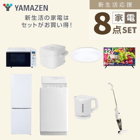 | 山善 YAMAZEN 【新生活応援セット】 家電セット 一人暮らし 新生活家電 8点セット 新品 ( 6kg洗濯機 157L冷蔵庫 オーブンレンジ 炊飯器 シーリングライト 32型液晶テレビ 電気ケトル スティッククリーナー ) |