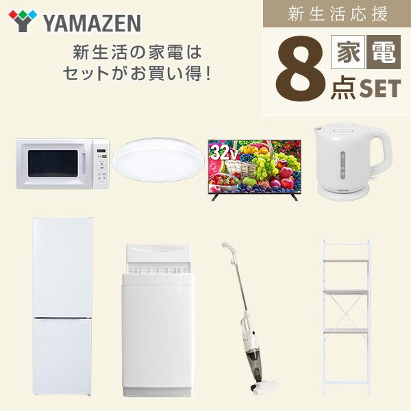新生活家電セット 8点セット 一人暮らし (6kg洗濯機 157L冷蔵庫 電子レンジ シーリングライト 32型液晶テレビ 電気ケトル スティッククリーナー ひとり暮らし 単身赴任新 学生 入学 おすすめ 山善 YAMAZEN【送料無料】