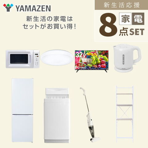 | 山善 YAMAZEN 【新生活応援セット】 家電セット 一人暮らし 新生活家電 8点セット 新品 ( 6kg洗濯機 157L冷蔵庫 電子レンジ シーリングライト 32型液晶テレビ 電気ケトル スティッククリーナー 家電収納ラック ) |