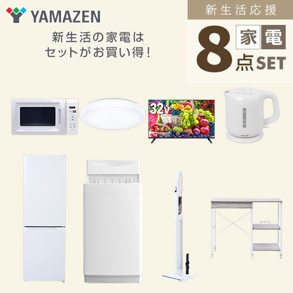 | 山善 YAMAZEN 【新生活応援セット】 家電セット 一人暮らし 新生活家電 8点セット 新品 ( 6kg洗濯機 157L冷蔵庫 電子レンジ シーリングライト 32型液晶テレビ 電気ケトル 軽量クリーナー レンジラック ) |