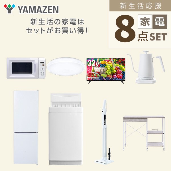 新生活家電セット 8点セット 一人暮らし (6kg洗濯機 157L冷蔵庫 電子レンジ シーリングライト 32型液晶テレビ 温調ケトル 軽量クリーナー レンジラック) ひとり暮らし 単身赴任新 学生 入学 おすすめ 山善 YAMAZEN【送料無料】