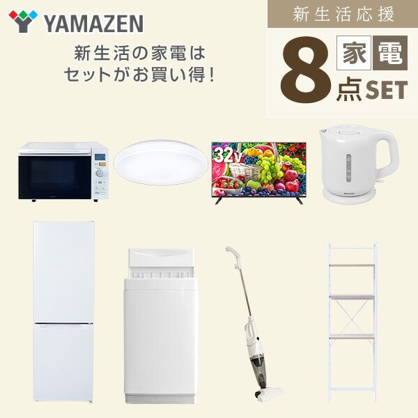 | 山善 YAMAZEN 【新生活応援セット】 家電セット 一人暮らし 新生活家電 8点セット 新品 ( 6kg洗濯機 157L冷蔵庫 オーブンレンジ シーリングライト 32型液晶テレビ 電気ケトル スティッククリーナー 家電収納ラック ) |