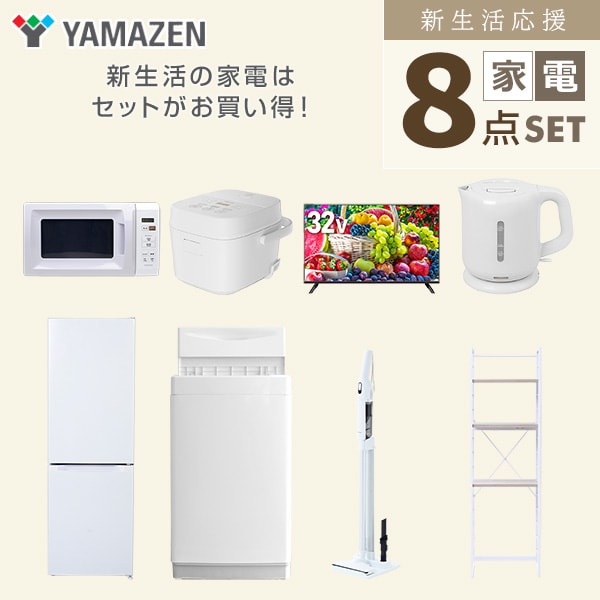 新生活家電セット 8点セット 一人暮らし (6kg洗濯機 157L冷蔵庫 電子レンジ 炊飯器 32型液晶テレビ 電気ケトル 軽量クリーナー 家電収納ラック) ひとり暮らし 単身赴任新 学生 入学 おすすめ 山善 YAMAZEN【送料無料】