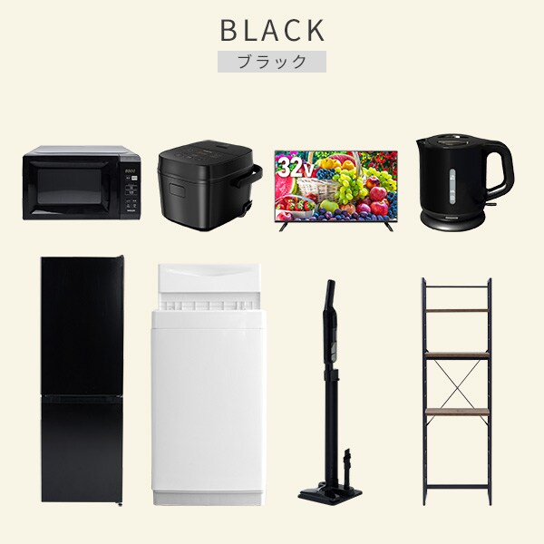| 商品説明 | 【洗濯機】 ●容量:6.0kg(洗濯時)、1.5kg(風乾燥時) ●8つのコース搭載(標準・毛布・おいそぎ・ドライ・ソフト・つけおき・部屋干し・槽洗浄) 【冷蔵庫】 ●容量:157L(冷蔵室109L/冷凍室48L) ●年間消費電力量:270kWh/年 【電子レンジ】 ●容量17L、ターンテーブル ●高周波出力:50Hz(500W、200W相当)、60Hz(650W、500W、200W相当) 【炊飯器】 ●炊飯容量:3.0合炊き ●8種の炊き分けメニュー:省エネ、白米、早炊き、玄米、無洗米、炊込み、おかゆ、温度調理 【32型液晶テレビ】 ●サイズ:32V型 ●2K対応ハイビジョン液晶テレビ 【電気ケトル】 ●容量:1.0L ●空焚き防止機能搭載 【軽量クリーナー】 ●わずか820gの軽量クリーナー ●連続使用時間:(強)約10分、(標準)約25分 【家電収納ラック】 ●棚やコンセントの高さを、モノに合わせて変更可能 ●2口コンセント付き(計1500Wまで)でよく使う家電や雑貨をすっきりひとまとめ ●ラック以外メーカー保証:1年間 |