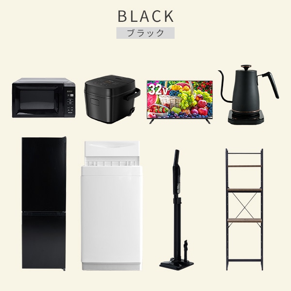 | 商品説明 | 【洗濯機】 ●容量:6.0kg(洗濯時)、1.5kg(風乾燥時) ●8つのコース搭載(標準・毛布・おいそぎ・ドライ・ソフト・つけおき・部屋干し・槽洗浄) 【冷蔵庫】 ●容量:157L(冷蔵室109L/冷凍室48L) ●年間消費電力量:270kWh/年 【電子レンジ】 ●容量17L、ターンテーブル ●高周波出力:50Hz(500W、200W相当)、60Hz(650W、500W、200W相当) 【炊飯器】 ●炊飯容量:3.0合炊き ●8種の炊き分けメニュー:省エネ、白米、早炊き、玄米、無洗米、炊込み、おかゆ、温度調理 【32型液晶テレビ】 ●サイズ:32V型 ●2K対応ハイビジョン液晶テレビ 【電気温調ケトル】 ●容量:800ml ●温度設定範囲:60-100度の間で1度単位で温度調整可能 【軽量クリーナー】 ●わずか820gの軽量クリーナー ●連続使用時間:(強)約10分、(標準)約25分 【家電収納ラック】 ●棚やコンセントの高さを、モノに合わせて変更可能 ●2口コンセント付き(計1500Wまで)でよく使う家電や雑貨をすっきりひとまとめ ●ラック以外メーカー保証:1年間 |