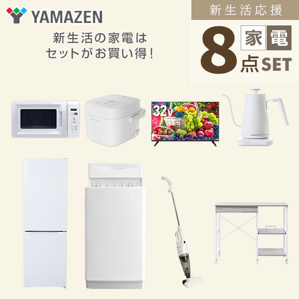 | 山善 YAMAZEN 【新生活応援セット】 家電セット 一人暮らし 新生活家電 8点セット 新品 ( 6kg洗濯機 157L冷蔵庫 電子レンジ 炊飯器 32型液晶テレビ 温調ケトル スティッククリーナー レンジラック ) |