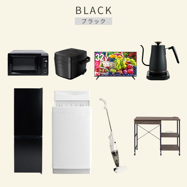 | 商品説明 | 【洗濯機】 ●容量:6.0kg(洗濯時)、1.5kg(風乾燥時) ●8つのコース搭載(標準・毛布・おいそぎ・ドライ・ソフト・つけおき・部屋干し・槽洗浄) 【冷蔵庫】 ●容量:157L(冷蔵室109L/冷凍室48L) ●年間消費電力量:270kWh/年 【電子レンジ】 ●容量17L、ターンテーブル ●高周波出力:50Hz(500W、200W相当)、60Hz(650W、500W、200W相当) 【炊飯器】 ●炊飯容量:3.0合炊き ●8種の炊き分けメニュー:省エネ、白米、早炊き、玄米、無洗米、炊込み、おかゆ、温度調理 【32型液晶テレビ】 ●サイズ:32V型 ●2K対応ハイビジョン液晶テレビ 【電気温調ケトル】 ●容量:800ml ●温度設定範囲:60-100度の間で1度単位で温度調整可能 【クリーナー】 ●スティック&ハンディの2WAY ●吸込仕事率:40W 【レンジラック】 ●ゴミ箱上を活用する、しっかり頑丈なキッチンラック ●2口コンセント付き(計1500Wまで)でよく使う家電や雑貨をすっきりひとまとめ ●ラック以外メーカー保証:1年間 |